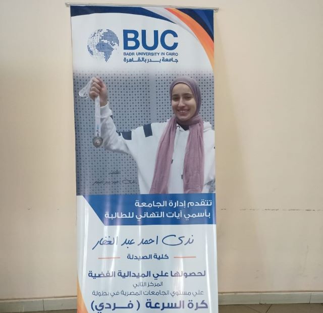 أضاف رئيس جامعة بدر، أن بعثة الجامعة شاركت ضمن (25) جامعة "حكومية، خاصة، وأهلية"، وبإجمالى أكثر من (100) طالب وطالبة ضمن فعاليات المسابقة، واستطاعت الطالبة "ندى أحمد عبد الغفار"، انتزاع "الميدالية الفضية" بعد منافسة قوية من الطلاب المنافسين فى "كرة السرعة".. موضحاً أن الاشتراك فى مثل هذه الفعاليات يأتى من منطلق حرص الجامعة ودعمها لكافة ألوان الأنشطة داخل الحرم الجامعى بما يسهم فى الفعاليات الخارجية على كافة المستويات .