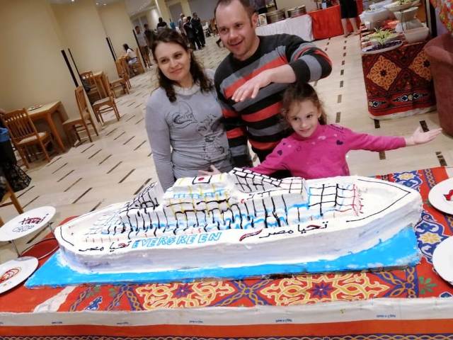 قال مصطفى نصار مدير احد الفنادق السياحية بالغردقة أن مجموعة فنادق أعدت تورتة طولها ثلاثة أمتار للإحتفال بنجاح المصريين في عبور أزمة السفينة الجانحة بقناة السويس وذلك بمشاركة عدد من السائحات الأجانب من مختلف الجنسيات الأجنبية من نزلاء الفنادق السياحية والذين قدموا التهنئة للرواد الفنادق من المصريين والعاملين بالفنادق على أنغام الموسيقى والأغاني الشعبية وسط فرحة الجميع وتبادل التهاني. وحرص الجميع على التقاط الصور التذكارية ونشرها على صفحاتهم على مواقع التواصل الاجتماعي.