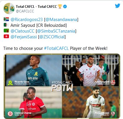 ويأتى ذلك بجانب الثلاثى الجزائرى أمير سعيود لاعب شباب بلوزداد الجزائرى، وريكاردو جوميز لاعب صن داونز الجنوب أفريقي، وكليتوس تشاما لاعب سيمبا التنزانى.