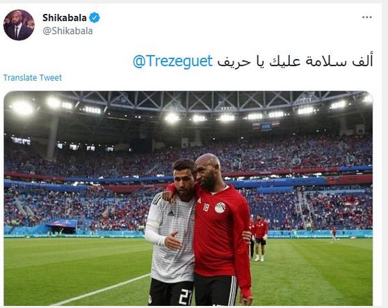ونشر شيكابالا عبر حسابة الشخصى على موقع التواصل الاجتماعى "تويتر" : "صورة تجمعه بتريزيجه، وعلق عليها قائلاً : ألف سلامة عليك يا حريف.