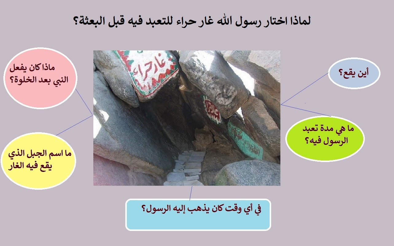 ج: حبب الى الرسول الخلاء والانفراد عن قومه، لما يراهم عليه من الضلال المبين، من العبادة للأصنام، والسجود للأوثان، وقويت محبته للخلوة عند مقاربة سن الأربعين. وكان يخرج إلى غار حراء شهراً في كل سنه.