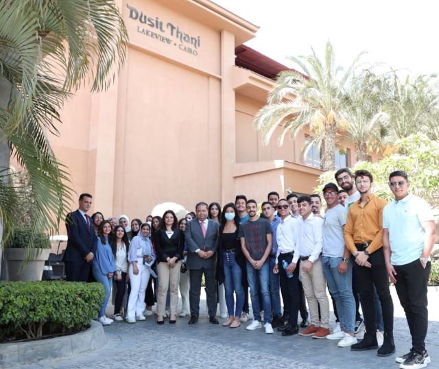 نظمت جامعة بدر، زيارة إلى " فندق دوسيت" فى القاهرة لطلاب الفرقة الأولى المرشحين للقبول فى برنامج إدارة الضيافة السويسرى"BHMS"، بـ" كلية الإدارة والعلوم المالية والاقتصادية" فى الجامعة؛ بهدف التدريب والتثقيف العملى؛ لتبسيط الدراسة العلمية فى فروع "برامج إدارة الضيافة"، بجميع أنواعه المختلفة ولتثبيته فى أذهان طالب الكلية، وذلك لرؤية جميع أنواع الخدمات الفندقية والسياحية التى يدرسها الطالب نظرياً وعملياً فى كبرى المنشآت السياحية.. وتأتى تلك الزيارة تحت إشراف الدكتور مصطفى كمال رئيس الجامعة، والدكتور إبراهيم القلا، نائب رئيس الجامعة لشئون الطلاب والتعليم.