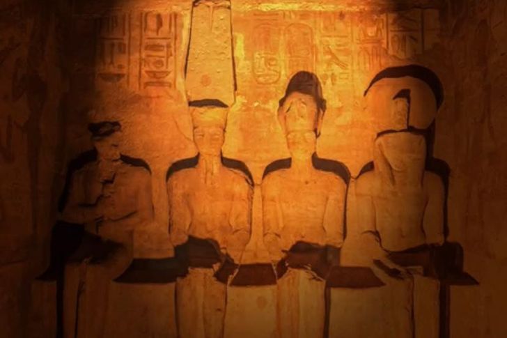 تبدأ الظاهرة الفرعونية الفريدة التى تحدث مرتين كل عام فى 22 فبراير و22 أكتوبر، وهي تعامد الشمس على وجه رمسيس الثانى بمعبده الكبير بمدينة أبو سمبل، حيث أشعة الشمس تتعامد على قدس الأقداس بمعابد أبوسمبل.