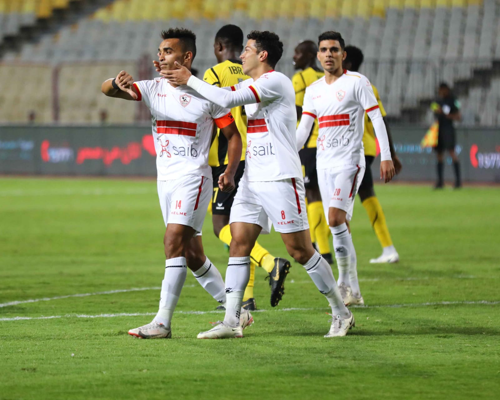 ولم يمنح لاعبو الزمالك منافسيهم فرصة لالتقاط الانفاس بعد الهدفين وسدد طارق حامد من خارج منطقة الجزاء مرت اعلى العارضة، ثم عاد امام عاشور للتسديد مرة اخرى من خارج المنطقة ايضا ارتطمت بالدفاع ومرت إلى ركلة ركنية من جهة اليمين، لينتهى الشوط الاول بتقدم فريق الزمالك بهدفين للاشئ .