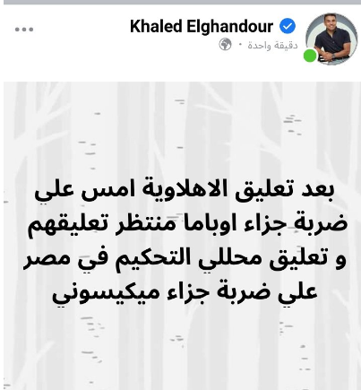 وكتب الغندور: "بعد تعليق الاهلاوية امس علي ضربة جزاء اوباما منتظر تعليقهم و تعليق محللي التحكيم في مصر علي ضربة جزاء ميكيسوني"