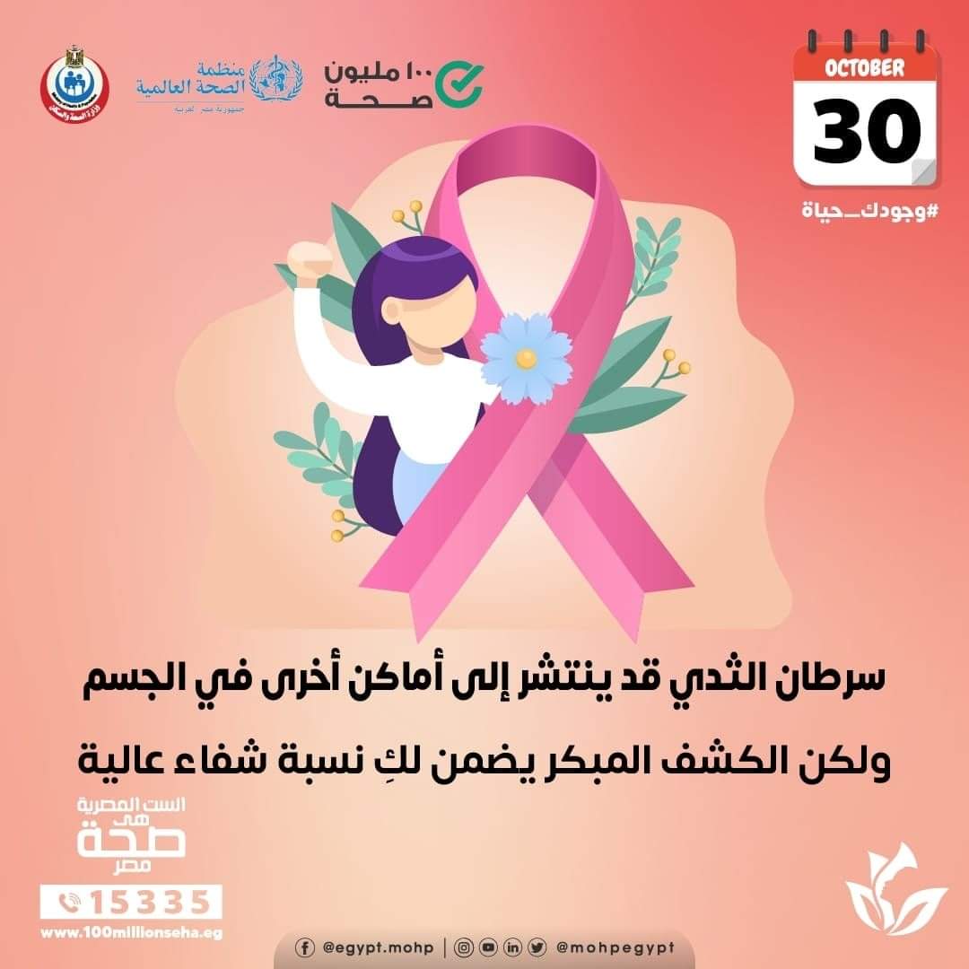 اكدت وزارة الصحة والسكان أن سرطان الثدي قد ينتشر إلى أماكن أخرى في الجسم مشددة على أن الكشف المبكر يضمن لكِ نسبة شفاء عالية.