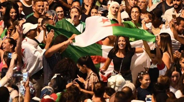 احتفل الجزائريون، بتأهل منتخبهم الوطني لكرة القدم للدور نصف النهائي من بطولة كأس العرب على حساب المغرب .