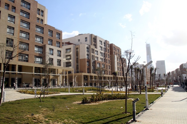 أما الحي السكني الخامس مقام علي مساحة 885 فدانا ويشمل 295 عمارة سكنية و105 فيلا و175 تاون هاوس وتوين هاوس و99 عمارة اسكان مختلط وتقوم بتنفيذ هذه المشروعات هيئة المجتمعات العمرانية الجديدة ومعدلات التنفيذ في مشروعات الاسكان تتراوح بين 72% و89% أما مشروعات المطورين العقاريين بلغت أكثر من 30%.