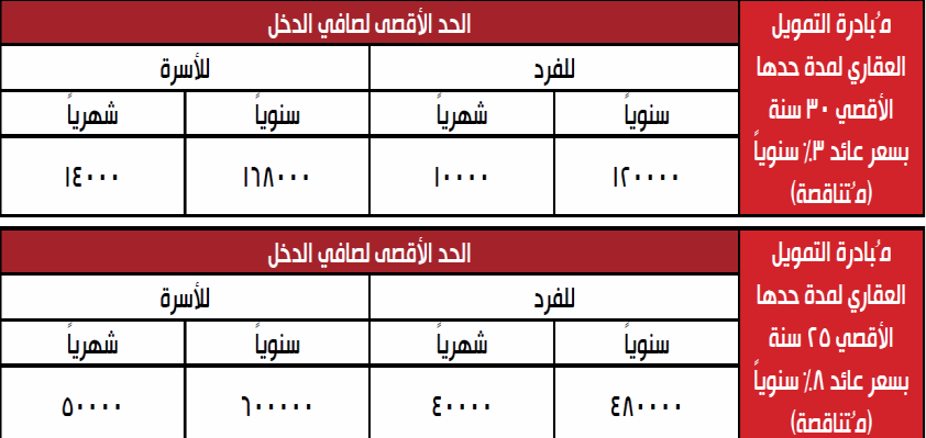 (أن يكون المتقدم من متوسطي الدخل بحيث لا يزيد صافي دخله السنوي من كافة مصادر دخله عن الحدود التالية: