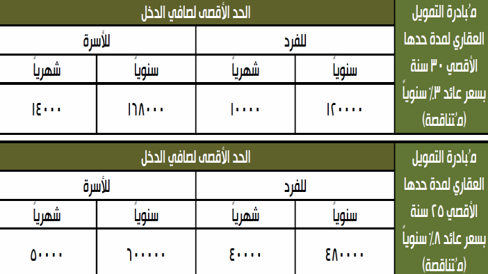 أن يكون المتقدم من متوسطي الدخل بحيث لا يزيد صافي دخله السنوي من كافة مصادر دخله عن الحدود التالية: