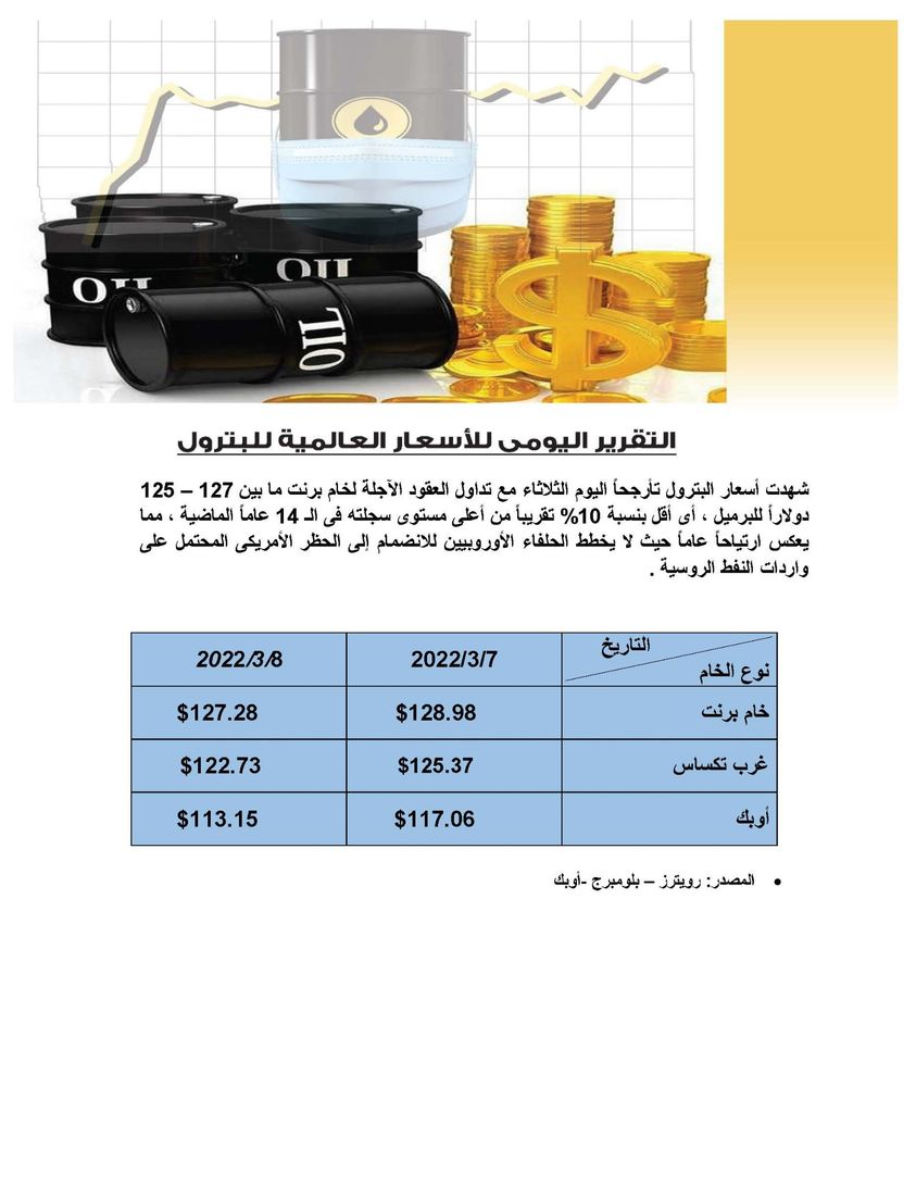 شهدت أسعار البترول تأرجحا، اليوم الثلاثاء، مع تداول العقود الآجلة لخام برنت ما بين 127-125 دولارا للبرميل، أى أقل بنسبة 10% تقريبا من أعلى مستوى سجلته فى الـ14 عاما الماضية، مما يعكس ارتياحا عاما حيث لا يخطط الحلفاء الأوروبيون للانضمام إلى الحظر الأمريكى المحتمل على واردات النفط الروسية.
